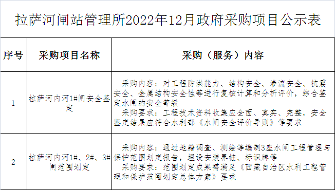 拉萨河闸站管理所2022年12月政府采购项目公示表